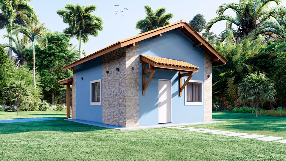 Com dois quartos bem distribuídos, banheiro funcional e lavanderia com fácil acesso, a casa oferece tudo o que é essencial para uma vida simples e agradável no meio rural. O telhado é com telhas cerâmicas e reforça o estilo comum das casas de campo.